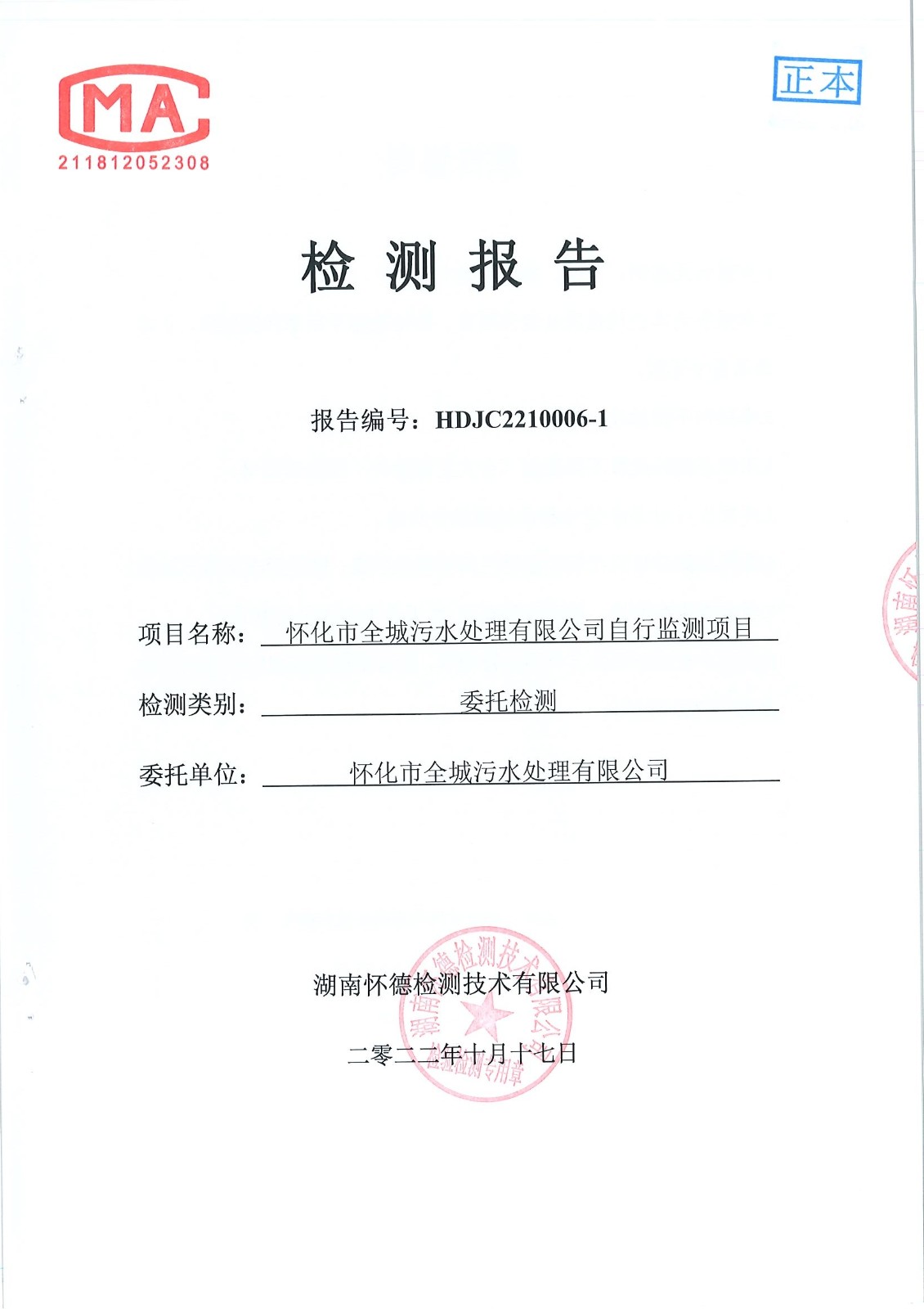 湖南怀德检测技术有限爱游戏(中国)一站式服务平台 2024年12月 污水出水检测报告